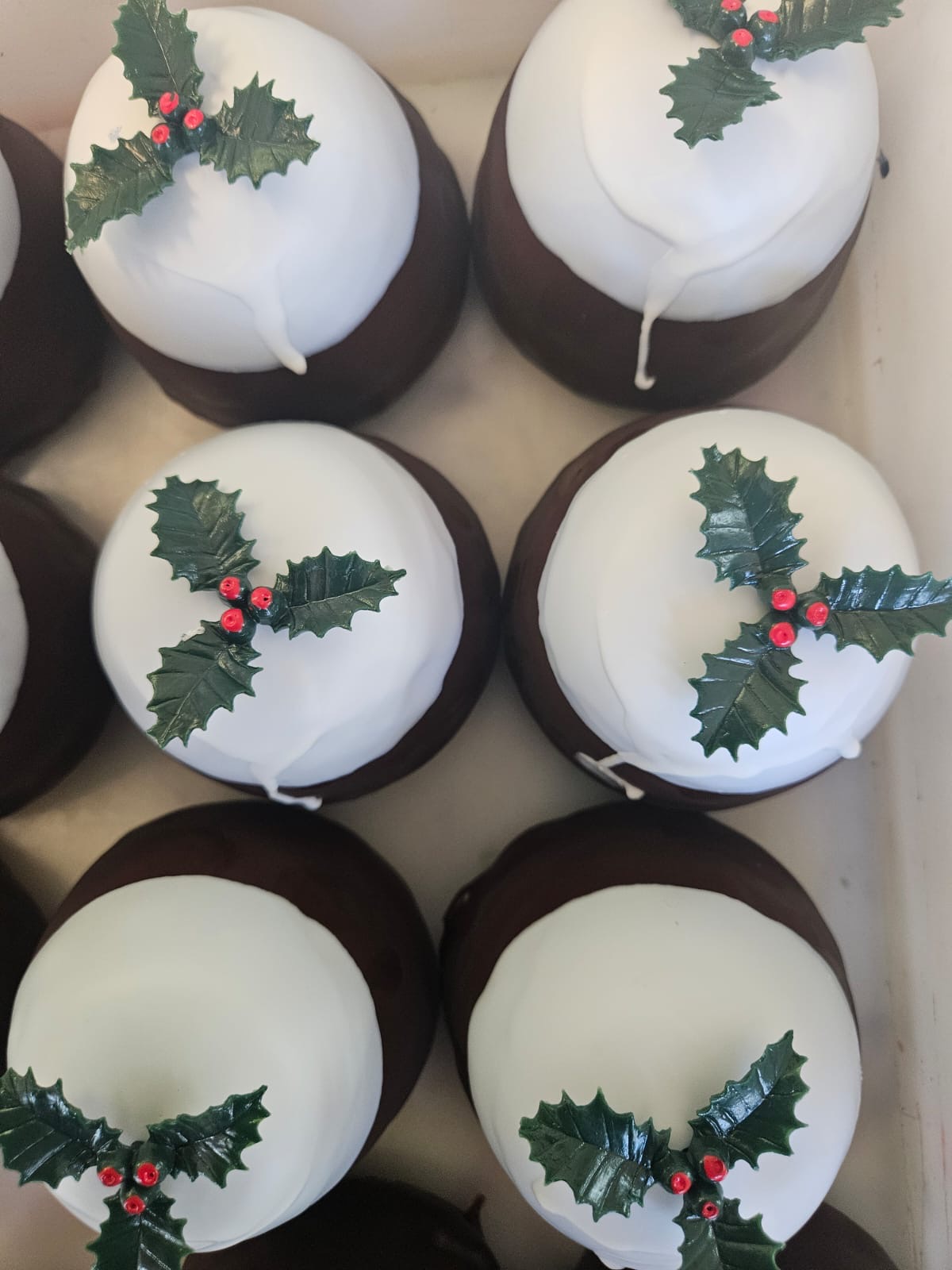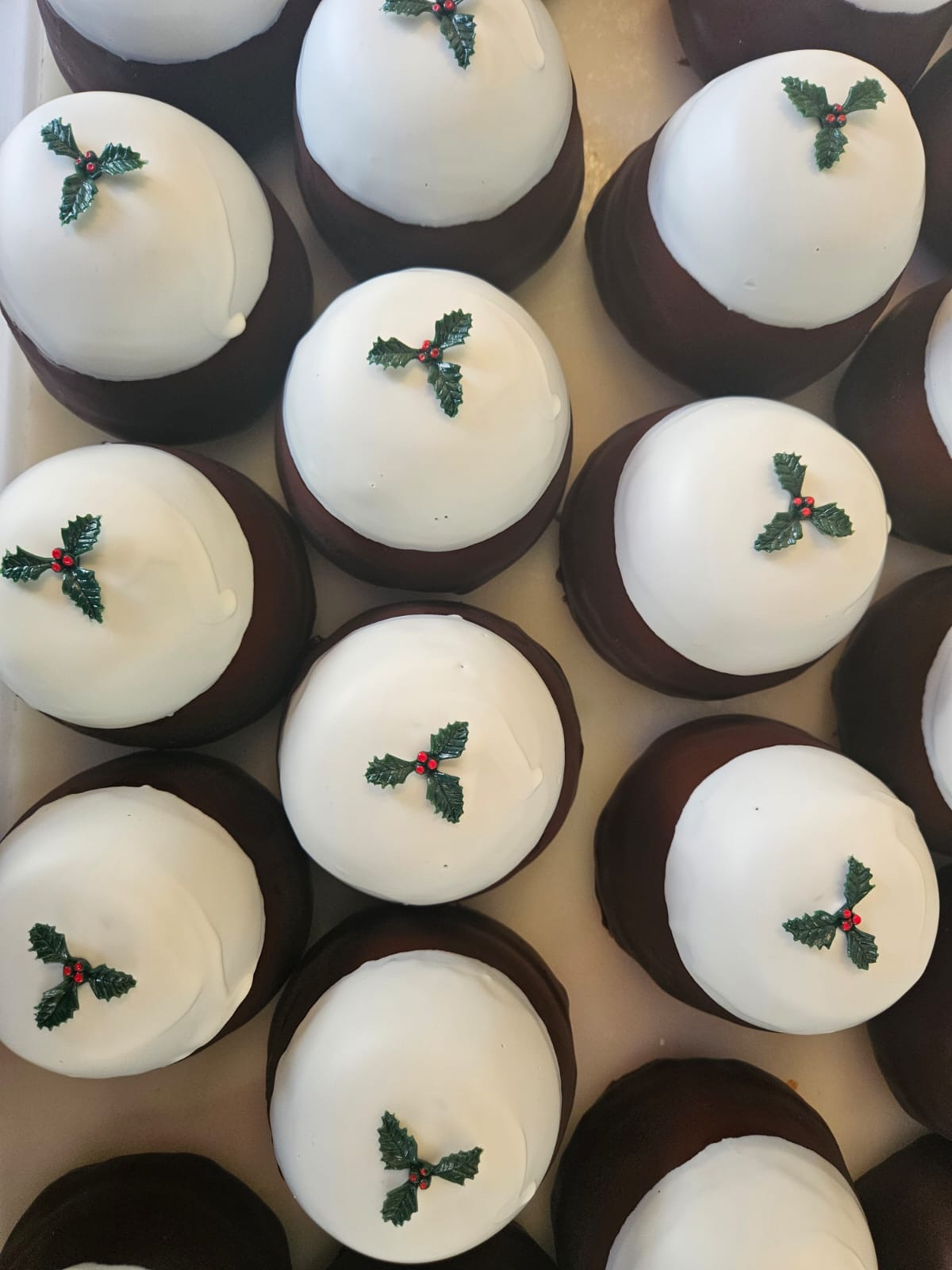 Each festive season we produce a cheese to imitate a dessert Christmas pudding. The cheddar is blended with luxury mixed fruits which have been infused with Black Mountain liqueur like the Barabrith cheddar but with cherries and more liqueur. Sealed in a chocolate brown wax with a white wax topping and decorated with a sprig of holly. This cheese would grace any cheeseboard over the festive period.